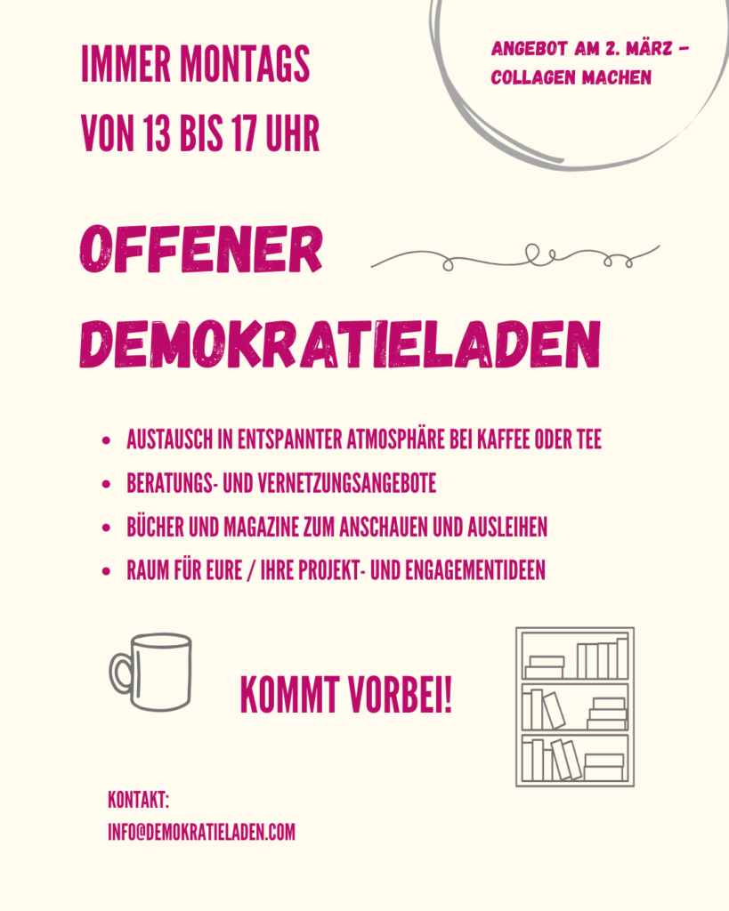 23.02.206 | 13 bis 17 Uhr Auftakt im Demokratieladen